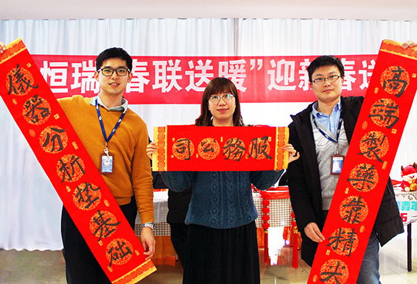 为营造欢乐祥和的新春氛围,弘扬中华优秀传统文化,2月8日中午,公司团委举办了第二届“团聚亚美国际官方 春联送暖”迎新春送祝福活动,邀请的2位连云港市书法家协会理事与4位公司书法爱好者们现场累计送出春联600余副,“福”字200余个,将新春的喜庆与美好的祝愿分享给亚美国际官方及广大员工。